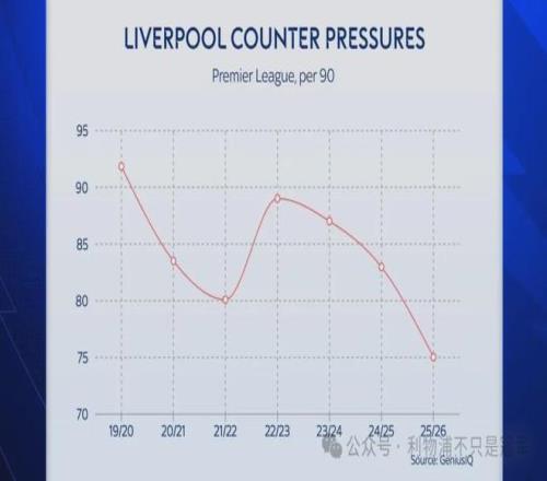 当然这里要强调,这不是斯洛特到来以后才有的趋势。统计数据表明,自2021-22赛季至今的最近5个赛季,利物浦在跑动距离方面呈现连年下降趋势,包括渣叔的最后3个赛季。