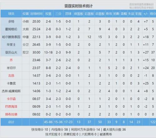 第四节开始,杨瀚森重新登场,雷霆双塔依然留在场上。杨瀚森利用脚步单挑哈滕,打成2+1!最后8分钟,雷霆换上纯替补,杨瀚森空接暴扣!面对雷霆包夹,杨瀚森助攻队友三分命中。不过杨瀚森外线手感下降了,三分屡投不中。 杨瀚森打满第四节,体力有点顶不住了,最后7分钟没能得分。全场结束,雷霆122-95大胜开拓者。雷霆17胜1负,继续领跑联盟。杨瀚森打了17分钟,11投3中拿到8分4板3助1抢断1盖帽,NBA生涯总得分超越周琦(24),中国球员第5位。