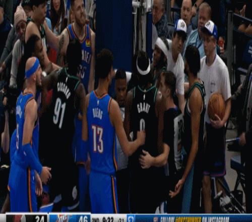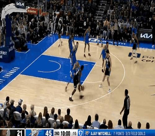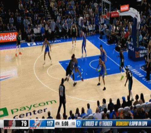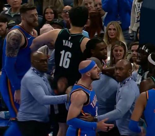 米切尔进攻遭到吕佩尔恶意犯规(裁判给了一级恶意),哈滕第一时间为队友出头,激烈讨要说法,冲突一触即发,横亘中间的杨瀚森头脑冷静,第一时间赶紧拉住哈腾并劝双方冷静。 在CBA经历过各种大风大浪的杨瀚森早对这种小孩子过家家式的小冲突麻木了,他拉住哈滕只说了一句话,就将冲突扼杀在萌芽中…… “好了好了,给我大哥周琦一个面子!回吧!“(圈主脑补) 虽说16胜1负的雷霆唯一败仗正是拜开拓者所赐,坐镇主场守株待兔静候复仇的雷霆没有给开拓者一分一秒的机会,早早就把杨瀚森“打出来了”! 克林根身背2犯,里斯状态糟糕,开拓者第一节最后1分钟已落后19分之巨,直接被打懵了。 杨瀚森在球队大比分落后时早早获得出场机会,半场出战5分36秒,3投1中,三分1中1,拿到3分1助1帽1拉架。 斯普利特也是死脑筋,不对杨瀚森抱有信任。 第三节,遭遇犯规困扰累积5犯,球队大比分落后,斯普利特还是愿意更相信状态糟糕的里斯,不给杨瀚森任何出场机会。 直到最后一节,开拓者已经整整落后28分,提前一节缴械投降,杨瀚森终于获得首发出战的机会。