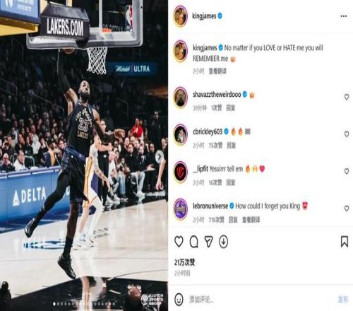 詹姆斯社媒再怼黑子:无论你爱我还是恨我,你都会记住我