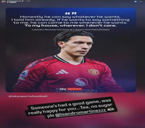 利桑德罗-马丁内斯用强硬的态度,正面回击了斯科尔斯在曼市德比前对他的批评:“老实说,他想说什么都可以。我已经跟他说过了,如果他有话想对我说,随时可以来找我,当面说。来我家也行,哪里都行,我不在乎。”