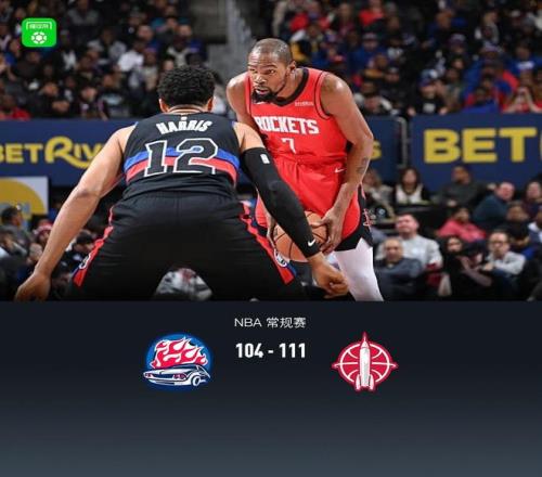 火箭背靠背111104客胜活塞,杜兰特32+7,坎宁安复出得12+8